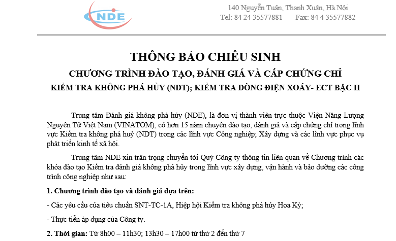 TRUNG TÂM ĐÁNH GIÁ KHÔNG PHÁ HUỶ